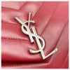 We guarantee this is an authentic SAINT LAURENT Calfskin Matelasse Medium Loulou Monogram Chain Satchel Lipstick Red or 100% of your money back. This elegant shoulder tote features chic chevron quilting at both the front and the back, with smooth leather sides. The bag features aged silver chain link shoulder straps with matching leather shoulder pads. The frontal flap features a prominent aged silver YSL monogram detail and opens to a partitioned black fabric interior with zipper pockets. This is an ideal bag for your collection for day or evening, with the classic chic only from Saint Laurent!