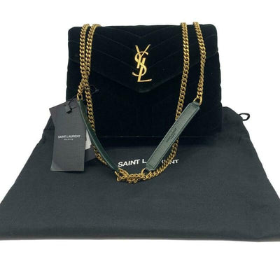 Inspired by and named for Yves Saint Laurent's muse Loulou de la Falaise, this Italian-velvet shoulder bag is elegantly detailed with matelasse stitching, monogram hardware and a shining chain-and-leather strap.