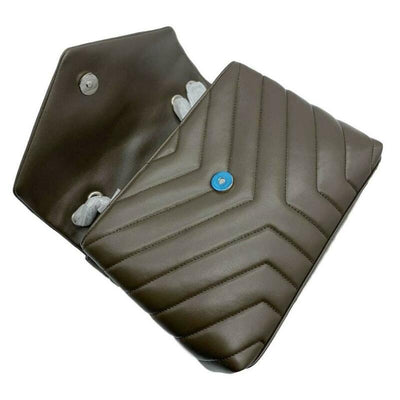 Exquisite matelasse stitching and monogram hardware set off the supple leather exterior of a just-right bag featuring a pull-through chain strap that can be worn doubled or extended. The style's well-organized interior is furnished with dual compartments separated by a convenient zip-pocket divider.