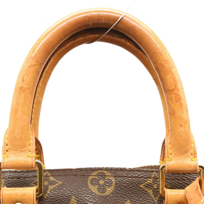 Exterior: Corner wear, creases, scuffs, patina of vachetta, edge wear, marks, liquid marks