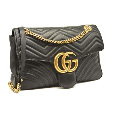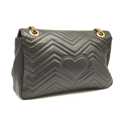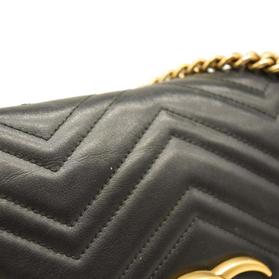 Used Gucci Calfskin Matelasse Medium GG Marmont Shoulder Bag Black