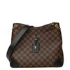 This is an authentic LOUIS VUITTON Damier Ebene Odeon MM in Black. This stylish messenger bag is crafted of signature Louis Vuitton damier coated canvas, with black leather trim. The bag features an adjustable shoulder strap with brass hardware and a flat front pocket for extra storage. The top zipper opens to a black fabric interior with a patch pocket.