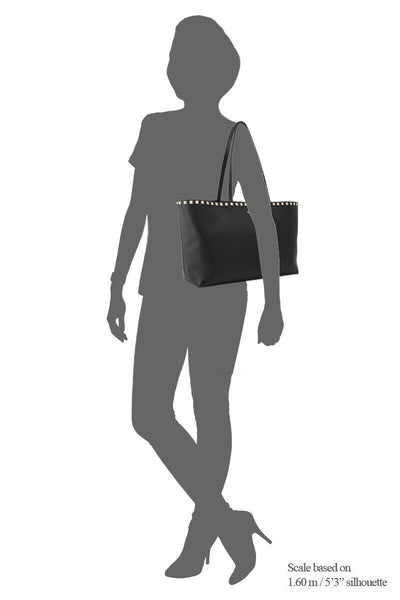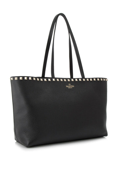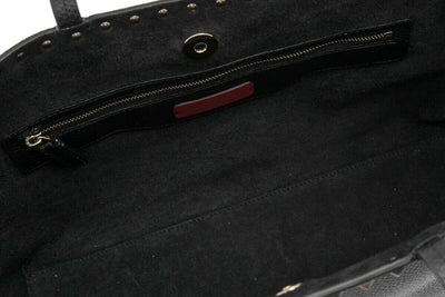 We guarantee this is an authentic VALENTINO Grained Calfskin Rockstud Tote Black or 100% of your money back. This stylish tote is crafted of rich calfskin with signature gold pyramid studs that line the top edge of the bag. The top is open to a spacious black suede interior with zipper and patch pockets. This is a chic tote with ample room for your daily essentials, from Valentino!
